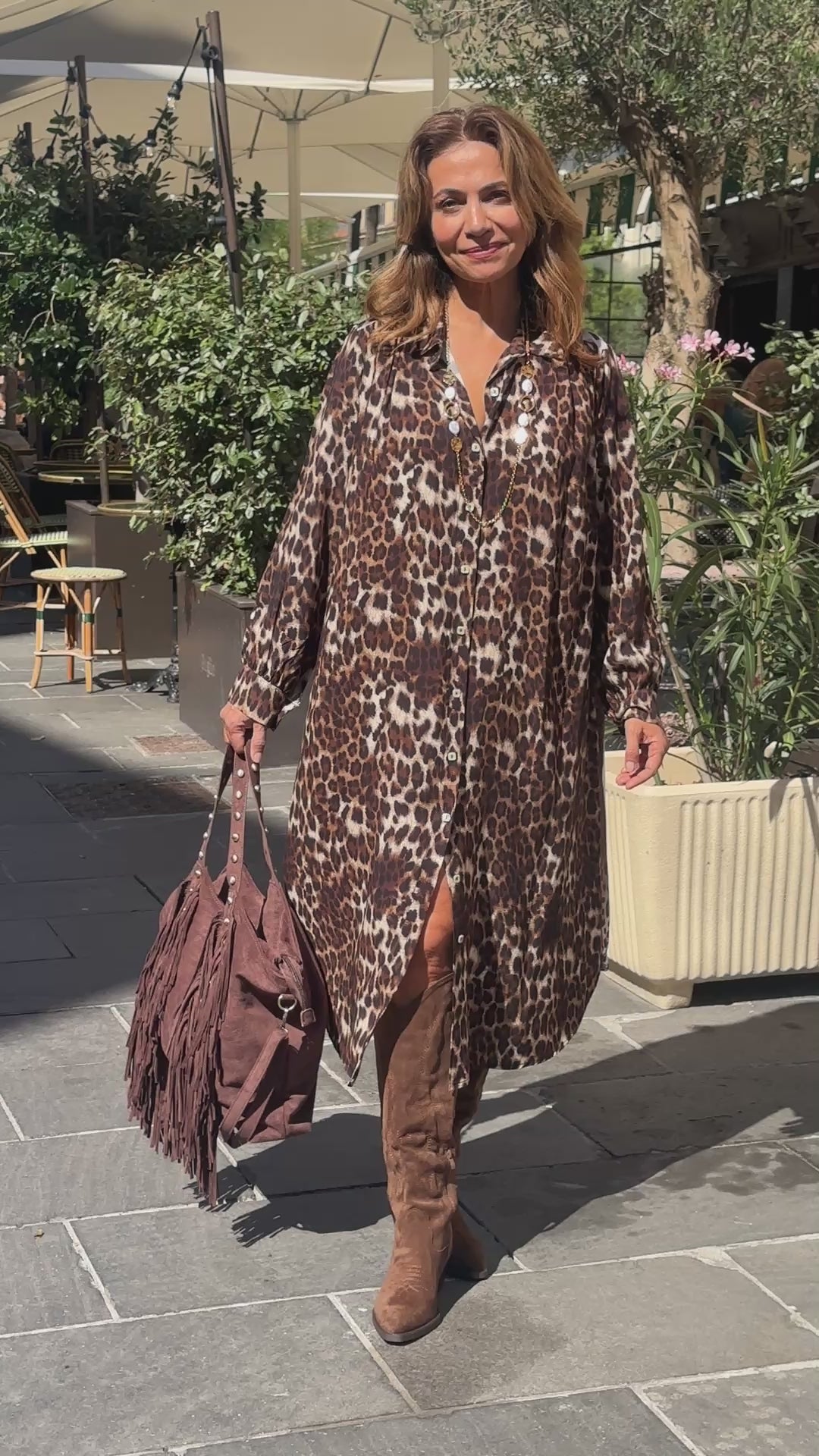 . Robe chemise longue imprimée léopard, poignets et boutons bas de manches
